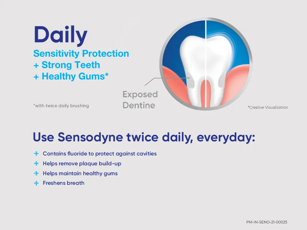 Sensodyne is world’s #1 Dentist recommended brand for sensitive teeth. 8 out of 10 dentists recommend Sensodyne. It relieves sensations caused by sensitive teeth.